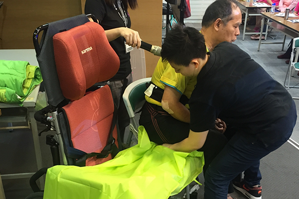 ▲曉明基金會開設專業照顧指導課程,老師教導如何協助移位