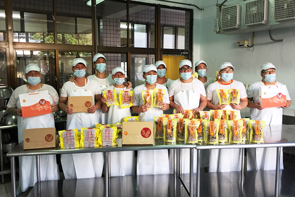 ▲學員穿戴著潔白的工作服,所有的肉酥跟香腸都出自他們的手,在晨曦會的協助下,學員不但戒了毒,更學會技能,重新開始自給自足的生活。